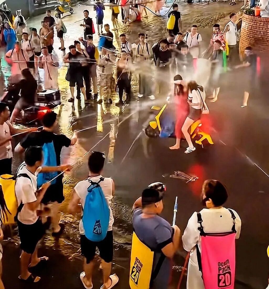 不少女性反映,在人流密集区域被针对性围堵,有人故意瞄准领口、后背等部位近距离猛喷,有人借机撕扯雨衣、泼水撩拨,甚至有人尾随追赶,不断用言语起哄挑衅。