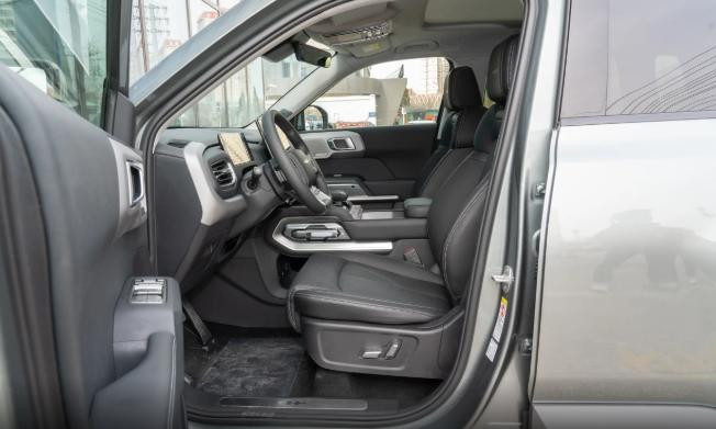 钛3外观还是比较吸引人的,有一个星际战车设计语言,打破传统纯电SUV的圆润刻板印象。前脸采用的是封闭式格栅,搭配参数化的矩阵纹理,看上去比较精致,有层次。大灯支持自适应远近光功能,晚上在行驶时可以自动的切换灯光,保证视野的清晰,也不会影响到其他车。引擎盖凸起的线条搭配下面梯形进气口,可以强化车辆的力量感。前保险杠两侧的导流槽不仅美观,还可以降低风阻,让车辆在高速行驶时更加的稳定。车身的侧面有隐藏式的门把手,提升科技感,而且还能降低风阻。宽大的轮胎,视觉效果很不错,同样也给越野带来了更好的抓地力。侧裙处就有黑色的防擦条,还有银色的镀铬装饰条,形成一种鲜明的对比。车尾则是修长的双线切割尾灯,里面有一个发光的标识,和车头的贯穿灯就会形成呼应,在晚上点亮之后辨识度还是比较高的。车顶还有一个可以开启的全景天窗,带着家人到外面去旅游,打开天窗就能更进一步接触外在的新鲜空气。