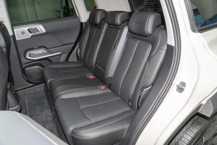 保持前排位置不动,体验者坐到后排,头部还有一拳空间,腿部能有两拳左右的距离,中间地板凸起不高,中间坐人的话腿也能放得舒服,不会憋屈。后排还有扶手和杯架,平时家人出门放个水杯、手机都很方便。车内储物空间也够日常用,前排的储物格能放手机、钥匙、纸巾这些小物件,前部行李舱有 151L,能放背包、充电枪之类的小件物品,后备箱常规容积满足日常买菜、接娃没问题,后排座椅能 40:60 比例放倒,放倒后地面平整,周末出去露营装帐篷、野餐垫,或者逢年过节拉行李,都能装得下,家用场景基本都能覆盖。