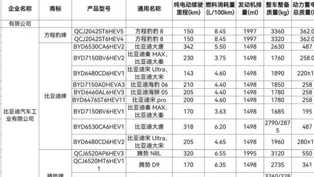 再有,最新一轮的申报信息图里,也是一样的刺激。工信部发布第 405 批《道路机动车辆生产企业及产品公告》新产品公示里,最大的看点之一就是比亚迪的插混序列车型,纯电续航数字的大升级。